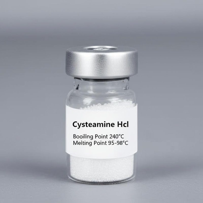La Cisteamina Hcl, nota anche come Cloridrato di Cisteamina, è un composto chimico con il numero CAS 156-57-0. È caratterizzata dal suo aspetto cristallino bianco, che la rende facilmente identificabile. Questo prodotto vanta un elevato livello di purezza di almeno il 98%, garantendo qualità ed efficacia in varie applicazioni.
